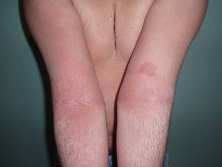 Se manifiesta por enrojecimiento y comezón en pliegues de codos, cara cuello y pliegues poplíteos. las complicaciones mas importantes son las infecciones agregadas o alergia secundaria a medicamentos aplicados desmesuradamente o por auto medicación.
