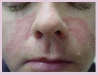 Es una enfermedad crónica de la piel que presenta remisiones y recaídas o etapas de agudización , se presenta como un enrojecimiento en la parte central de la cara especialmente en la nariz, hay eritema, papulas, telangiectasias o venitas dilatadas, pústulas y en ocasiones enrojecimiento ocular con ardor y prurito La rosácea comúnmente puede confundirse con el acné que aparece en la edad adulta, por dichas lesiones papulares y nodulares. Es importante que la Rosácea se atienda ya que puede progresar a etapas más severas.